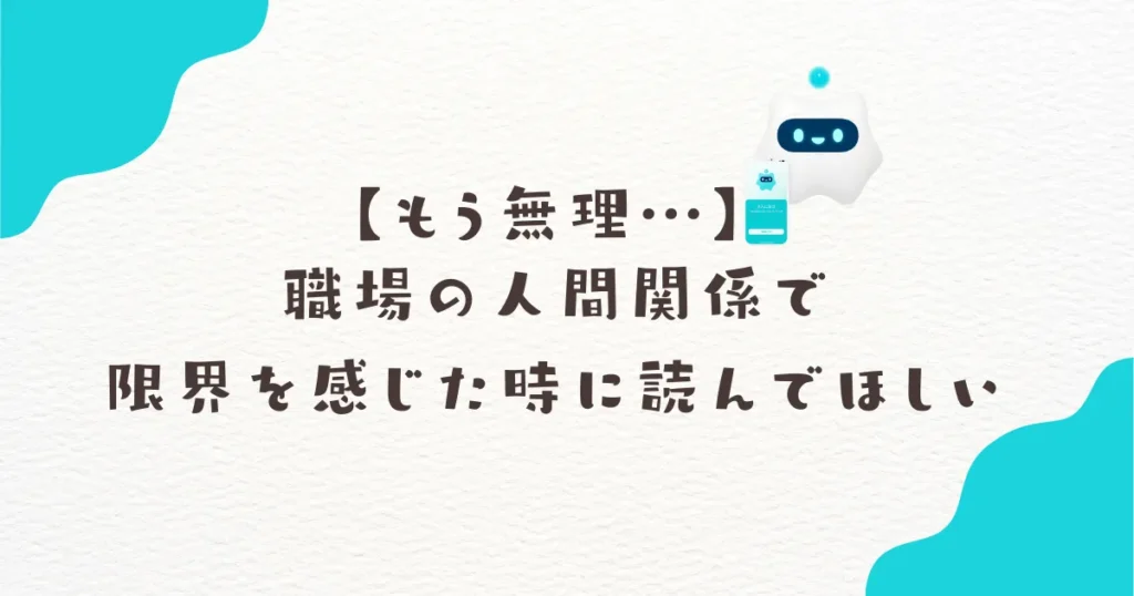 もう無理…職場の人間関係で限界を感じた時に読んでほしい【心を守る方法】